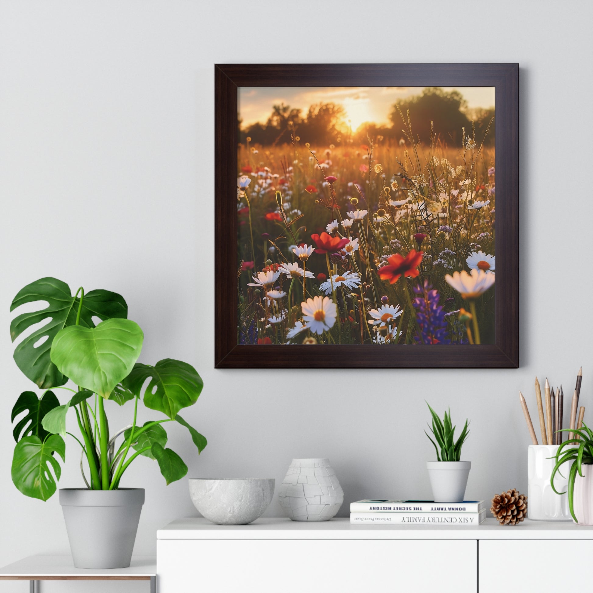 Securely framed in one of three colors (black, white, or walnut), this premium Wildflower Meadow at Sunset picture is printed on archive-worthy photo paper and ink.